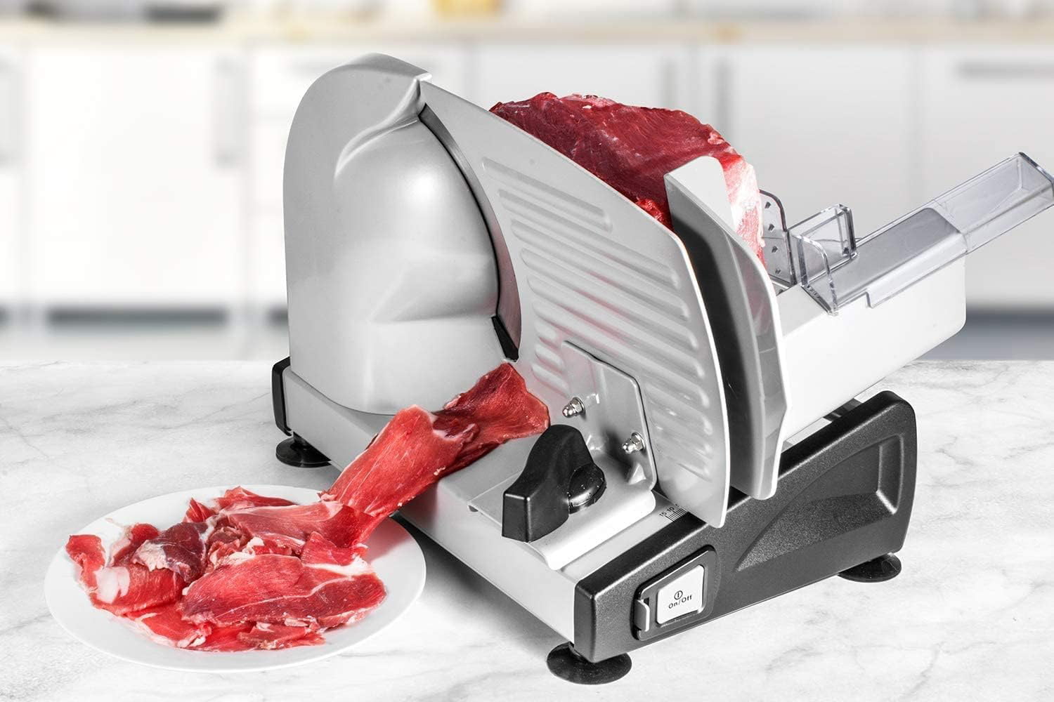 - 🔒 YOUR SAFETY IS OUR PRIORITY - Our slicer machine comes equipped with essential safety features. The illuminated on/off switch ensures easy operation, while the suction cup feet provide stability and security during use. Additionally, the blade guard and finger protection ensure maximum safety while handling the slicer.